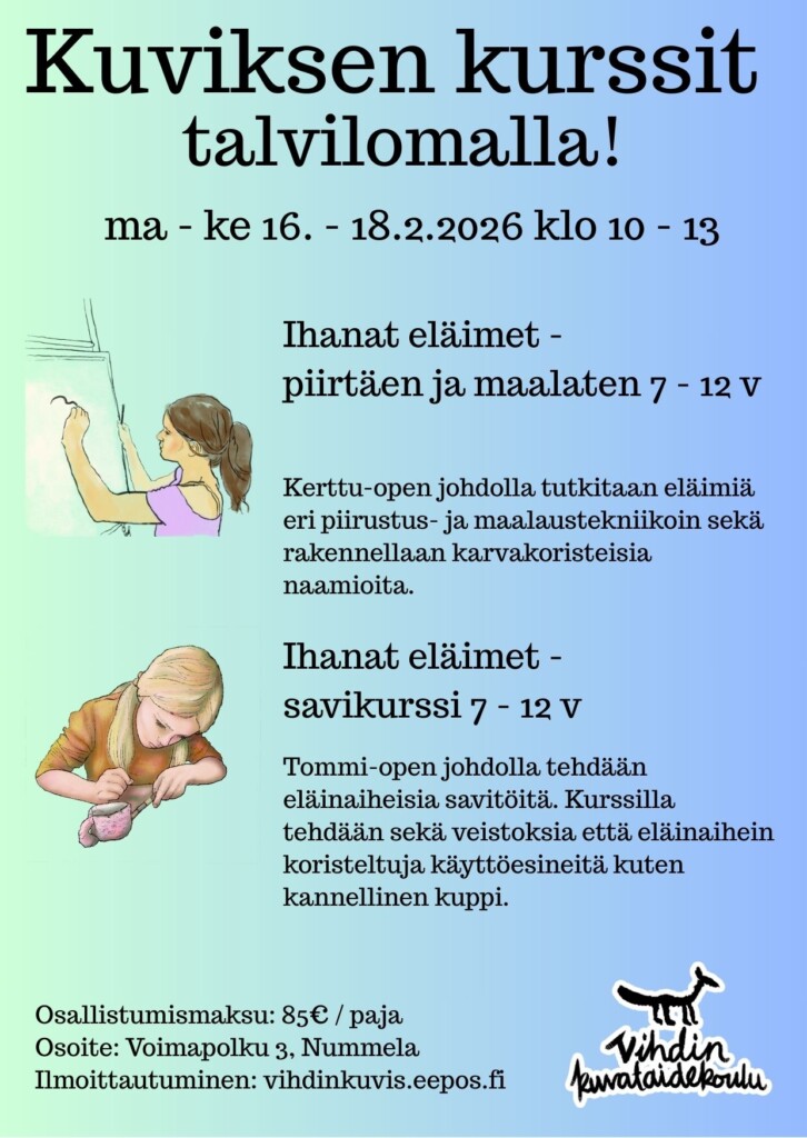 Kuviksen kevätlukukausi alkaa viikolla 3 ma 12.1. lukujärjestyksen mukaisesti. Kuviksen talvinäyttely on avautunut Vihdin pääkirjastossa Nummelassa. Esillä on […]